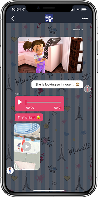 Read your heroes chats if you were there live. Listen to their voice messages and watch their videomessages. Group chats and sending images is also possible.